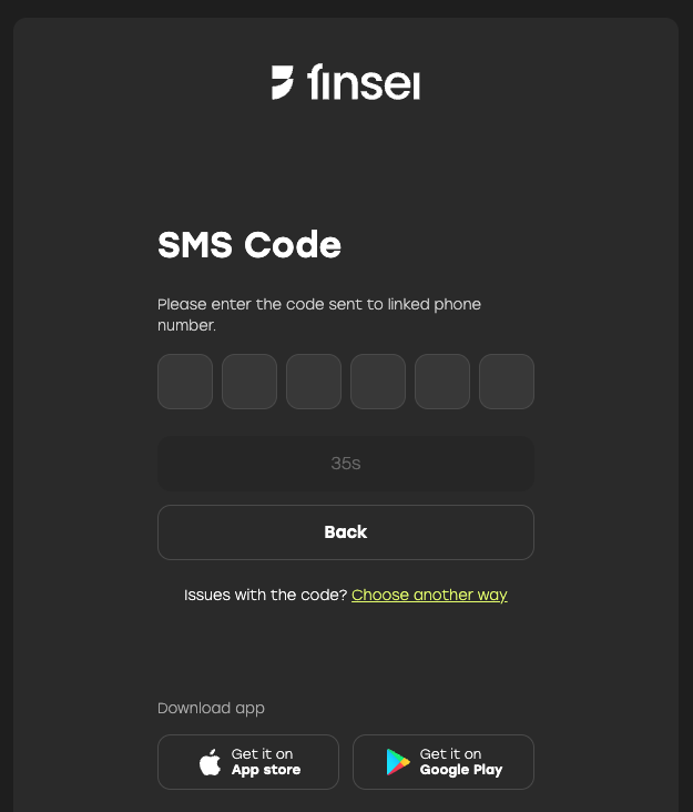 If you did not receive SMS, please check this article: https://finsei.freshdesk.com/support/solutions/articles/47001261393-sms-problem